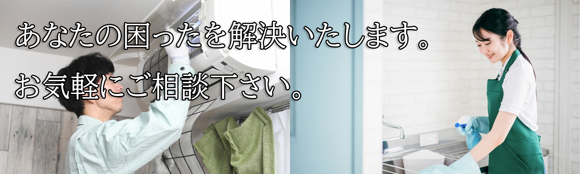 エアコン工事・クリーニングや、リフォーム、不用品回収、ハウスクリーニング、引越し対応、草苅り剪定といった力仕事や、買い物や並びといった代行まであらゆることを承ります。